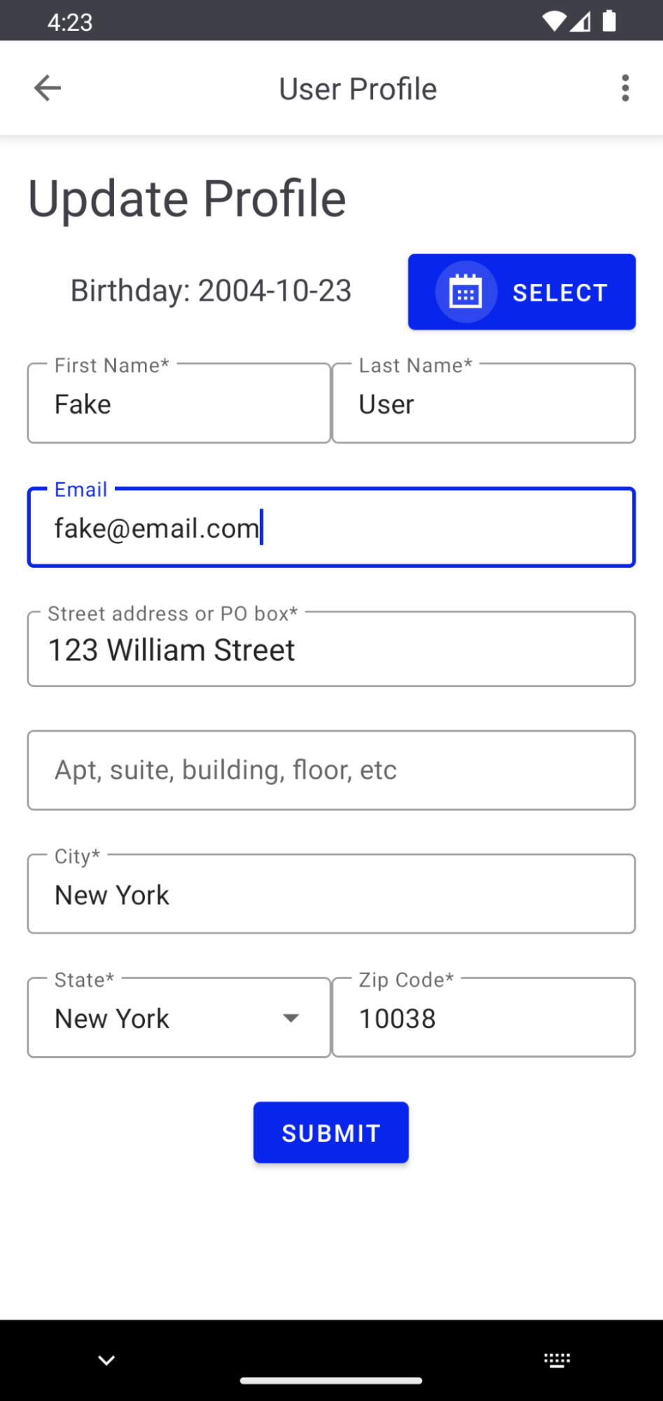 An example of the user profile information that is managed by the Auth SDK is illustrated in the following image.